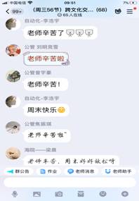 但真正的上课效果会怎样呢?上课前的那天晚上,学生们热心地在班级QQ群里分享了其他老师上课的各种好方法、好形式,有的学生还专门私信我,告诉我怎么使用一些教学软件。感动之余,我对自己的授课方式又产生了动摇,不知道学生会否喜欢。第二天,我心怀忐忑地上完了第一次网课,再问学生,四个班级无一例外地回复:“陈老师,就这样上!”