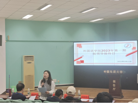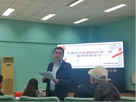 (通讯员 张睿、邹蔚鹤)2023年5月11日下午3:00,beat365平台官方网站在北一楼报告厅举办2023年第一期院领导接待日,活动主题是外语学子国内外深造论坛。学院党委副书记胡文勤、副院长杨红燕、教育部出国留学培训与研究中心副主任赵英科、英语系党支部书记张地珂和本科各年级学生代表参加了本次活动。