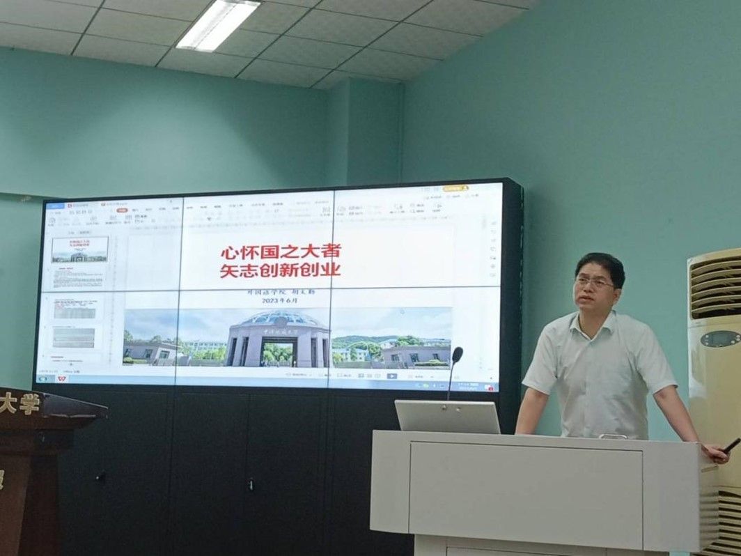 最后,beat365平台官方网站党委副书记胡文勤总结讲话。他首先对各位嘉宾的分享做出了精彩的点评,然后从政策保障与制度安排、实践探索与逆势突围、立足学院与选题参考三个方面,重点介绍了学校和学院鼓励同学们创新创业的奖励资助政策、目前大学生创新创业中容易遇到的主要问题和解决方案以及可供外语专业学生参考的创新创业选题。胡文勤老师在讲话中也穿插了他十余年指导学生团队参加创业比赛和实体孵化的许多典型案例,激励大家向创业榜样们学习。