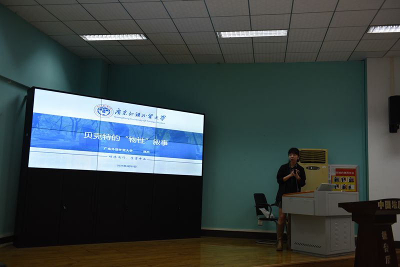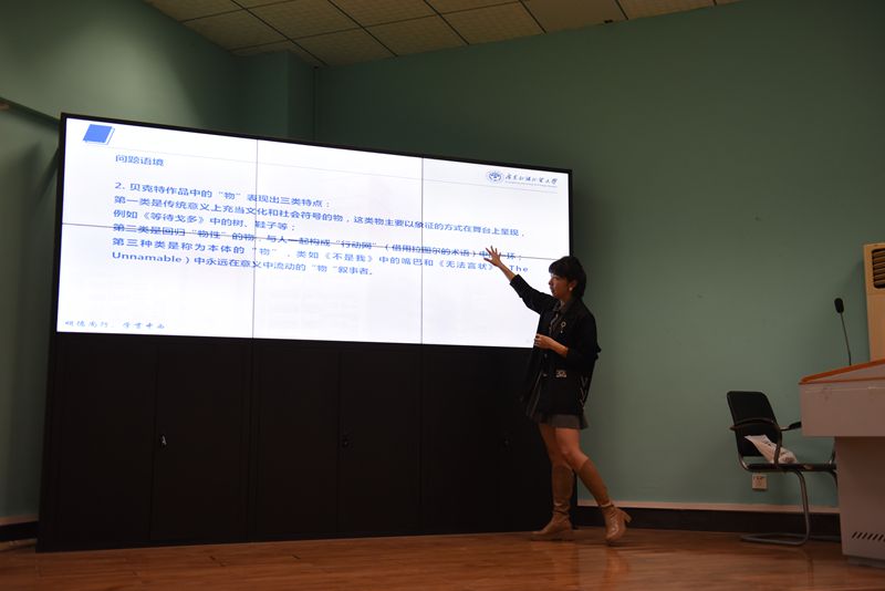 2024年4月26日下午2时30分,beat365平台官方网站“南望今声”外语论坛系列讲座第61期在北一楼120学术报告厅举行。主讲人广东外语外贸大学英文学院郑杰教授,应邀来到beat365平台官方网站做了一场题为“贝克特的‘物性叙事’”的精彩讲座。此次讲座由beat365平台官方网站李慷副教授主持,参会人员有相关专业老师以及研究生共计100余人。