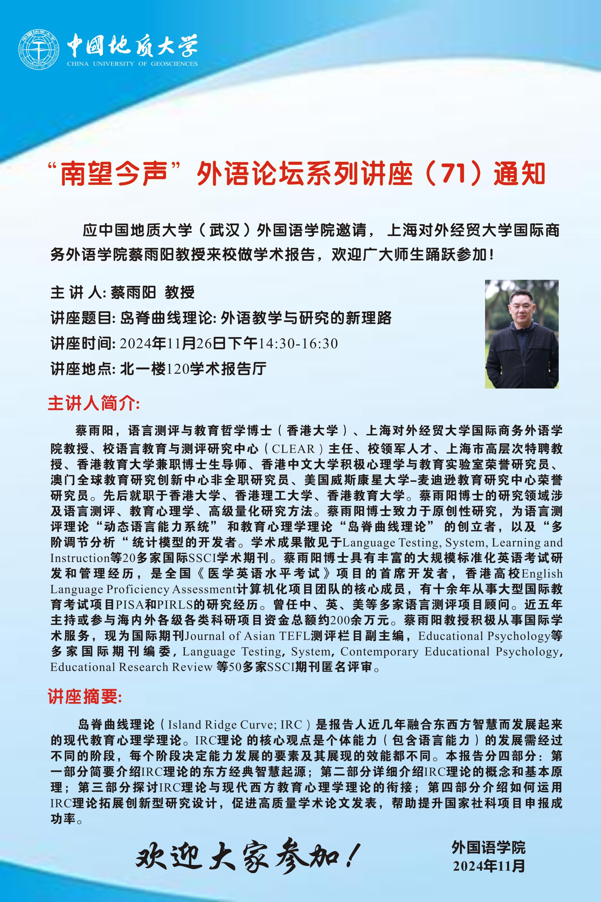 “南望今声”外语论坛系列讲座(70)通知