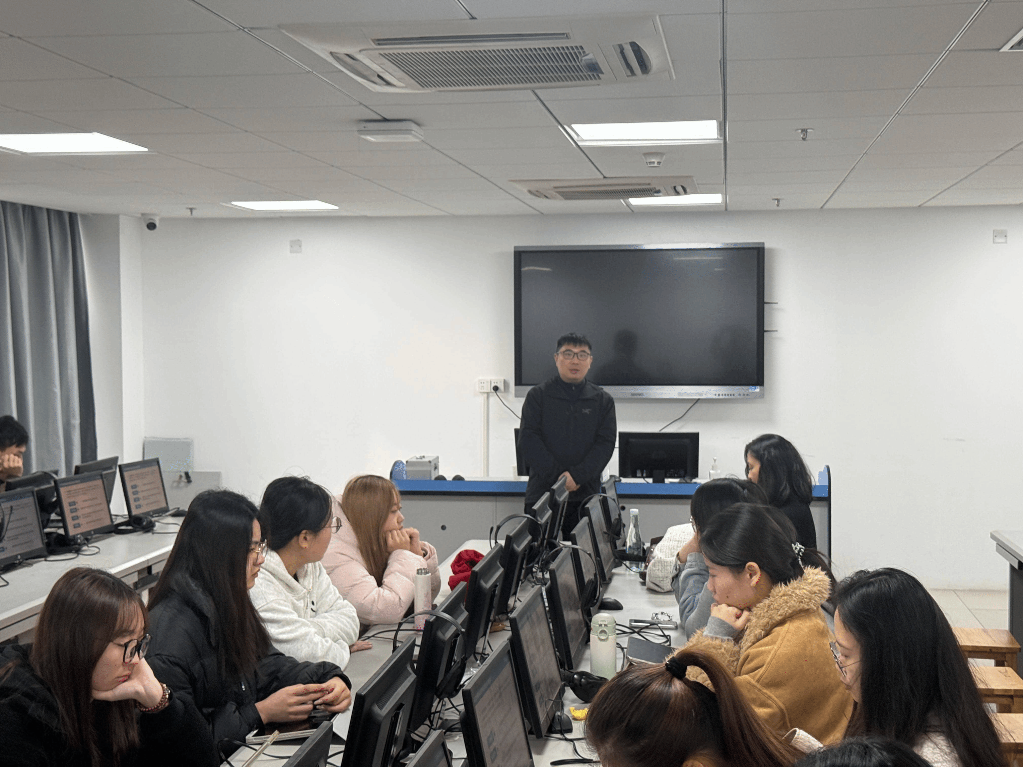 互动环节中,林教授就翻译资格考试、译者素养、理论适用性等问题与在场师生展开深入交流。他特别指出,在AI时代,部分传统翻译理论已难以解释机器翻译现象,亟需构建新的理论框架。