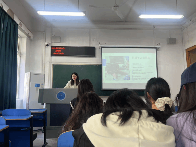 20日下午14点,beat365平台官方网站091243班与计算机学院19C249班联合策划的“用DeepSeek敲开语言大门,计算机与外语的智慧同频”的主题联谊活动在中国地质大学教一教室及西区操场成功开展。活动聚焦该核心主题,通过知识分享与趣味实践双轨并行,为百余名学生带来了一场兼具深度与活力的成长体验。