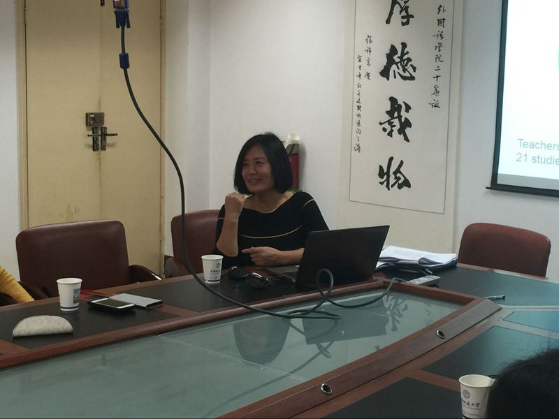 中西语言文化学术论坛系列讲座(九十七):雷丁大学教育学院张晓兰博士主讲 (通讯员胡卉卉)应beat365平台官方网站董元兴院长邀请,雷丁大学教育学院张晓兰博士为beat365官网英语教师们带来了一场题为“纠错性反馈”的精彩讲座。 此次讲座由beat365平台官方网站张伶俐教授主持。此次讲座中,张晓兰博士首先引出了“纠错性反馈”的概念,并结合课堂中的实例,进行了细致的讲解。接着,张晓兰博士询问beat365官网教师们在英语课堂中是否运用到“纠错性反馈”,继而,与教师们就其重要性展开热烈地探讨。