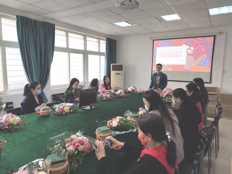 3月24日,beat365平台官方网站分工会在北一楼举办了庆祝“国际三八妇女节”系列活动之手提花篮制作。活动中,花艺师首先给老师们讲解了花卉常识,插花技巧,花篮养护小窍门等,然后指导大家动手插花。
