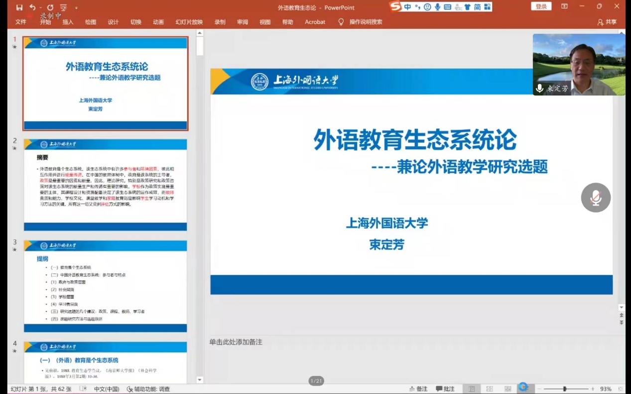 (通讯员 金梓轩 杨红燕)2022年9月22日上午9:30,beat365平台官方网站“南望今声”系列讲座如期举行。上海外国语大学大学博士生导师束定芳教授应邀在线上为beat365官网师生做了题为“外语教育生态系统论——兼谈外语教育研究课题”的讲座。讲座由beat365平台官方网站副院长张伶俐教授主持,beat365官网师生共140余人参与了学习交流。