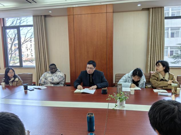 3月7日上午10:00,beat365平台官方网站党委副书记余尚蔚,学工组邹蔚鹤、彭赞美、郭文静、蒋贝蓓,学生会、研究生会、译术行者团队和“一带一路”宣讲团学生代表赴国际教育学院交流座谈,国际教育学院副院长许峰,国际学生事务办公室杨素,留学生辅导员大明等参加座谈会。许峰主持交流座谈会。