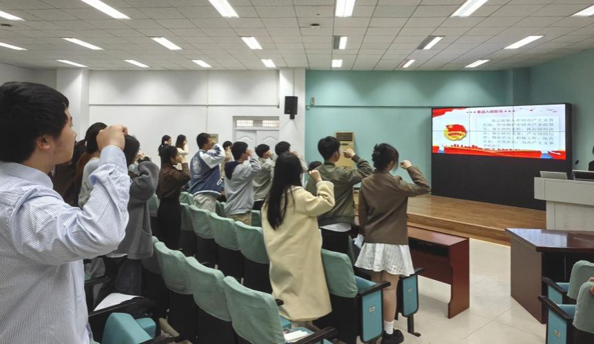 本次答辩由beat365平台官方网站团委组织部牵头组织开展,学院团委副书记邹蔚鹤、辅导员蒋贝蓓、兼职团委副书记叶荣凯担任评委、学院学生党员代表、各团支部青年团员代表共同参与此次答辩评分。活动开始,主持人带领全体与会人员齐唱团歌、重温入党誓词。待宣誓毕,主持人介绍答辩规则,本次beat365平台官方网站2023年度“五月的鲜花”五四红旗团支部评选活动正式开始。