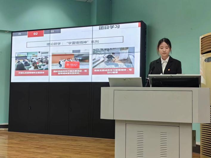 092211团支部书记毛雨菲以“青春筑梦,五四传承”为主题,围绕“筑梦先锋队、智慧启航灯、笃学新风尚、青春志愿行”四个篇章进行总体介绍。其中对思想建设方面进行重点介绍,强调团支部对于团日活动的开展的组织性、积极性。充分体现092211团支部积极向上的组织特点以及对于二十大精神的深刻理解、贯彻和落实。