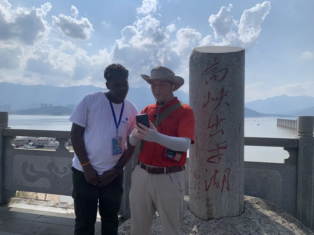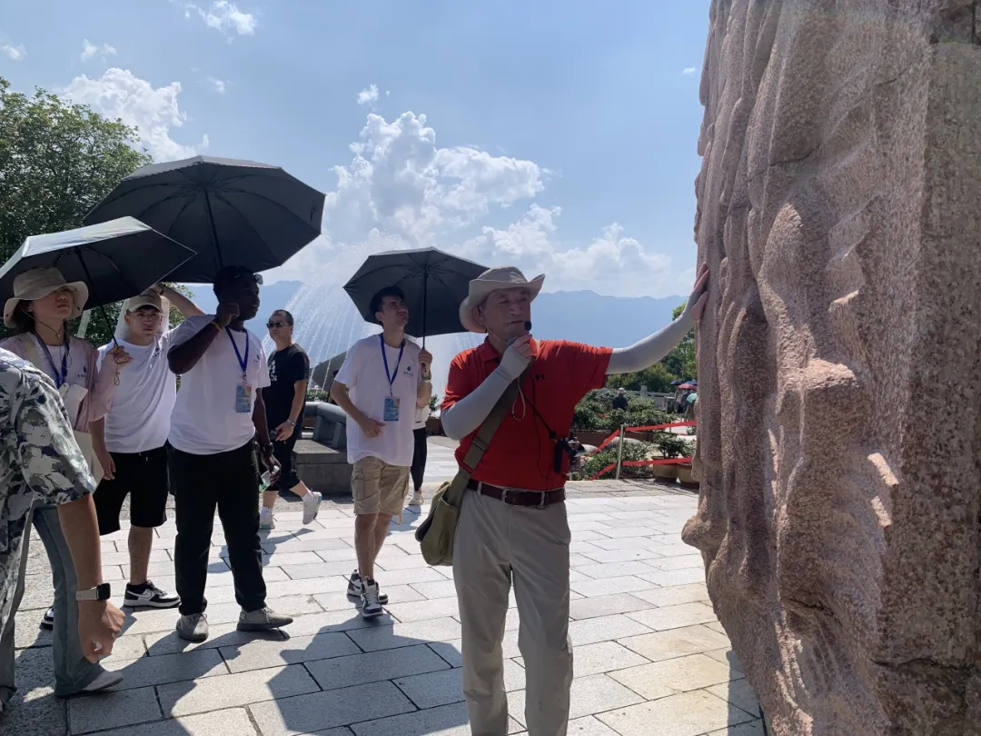 “截断巫山云雨,高峡出平湖。”行至镌刻着毛泽东“高峡出平湖”的石碑前,乌干达籍戴维和刘教授一起朗诵脍炙人口的毛泽东诗词《水调歌头·游泳》。实践团成员跟着诗词的节奏,感受毛泽东同志笔下三峡工程的壮丽景象,体会中国人民战天斗地、改造自然的伟大精神。