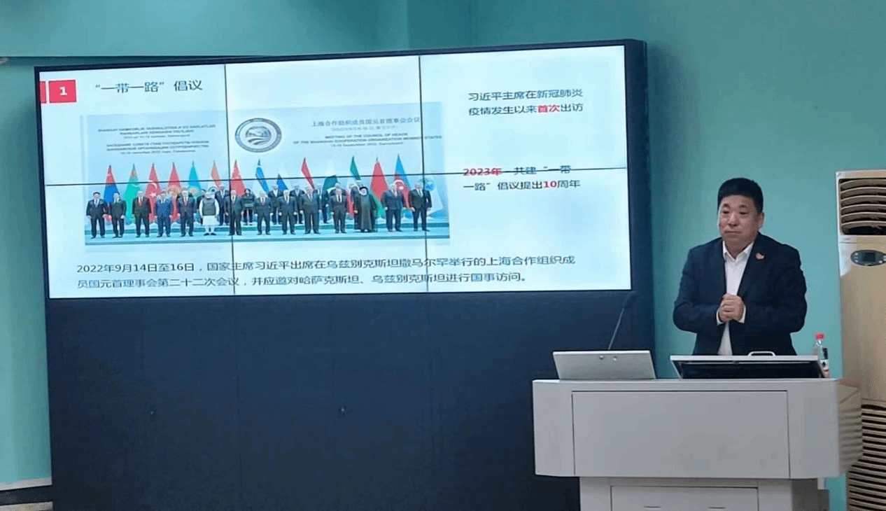 2024年12月24日下午4时,beat365官网93届校友、广东科技企业合作促进会会长、广东-独联体国际科技合作联盟秘书长郭凤志受邀以“‘一带一路’倡议下外语人的机遇与素质培养”为主题在北一楼报告厅为学院师生开展红·外线大思政课堂讲座。讲座由学院党委书记刘世勇主持,beat365官网近200名师生参加讲座。