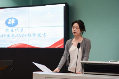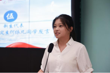 优秀在校生代表、2022级本科生毛欣如同学分享自身在学院的成长经历,她指出学院的良好的教育氛围和师生团结奋进的精神风貌对自己为人、为学、为事产生了深远影响。她勉励同学们用好学院多元成长发展平台,不断积累和探索,做学习的有心人、实践的奋进者。新生代表、2025级研究生何依凡同学在发言中回顾了自己考研的心路历程和对未来的展望。她强调了语言作为沟通不同文化的桥梁的重要性,号召同学们珍视学习时光,多维发展,勇敢追梦。