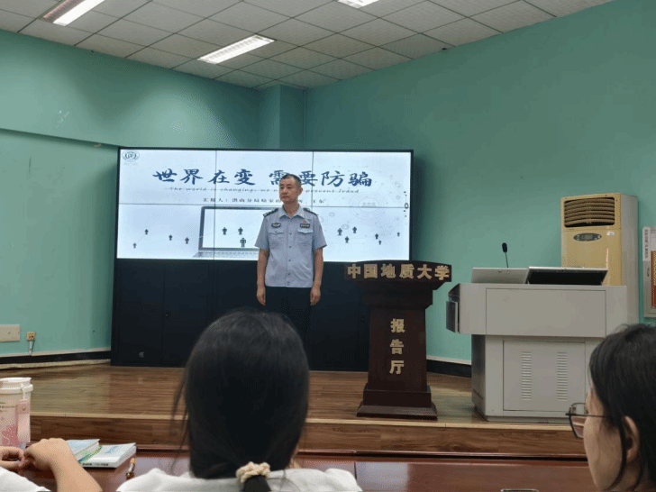 本次授课特邀喻家山派出所王东警官结合多年基层反诈工作经验,为学生开展以“防范电信网络诈骗”为主题的专题讲座。他通过剖析“刷单返利”“冒充老师收费”“虚假购物”等高校高发骗局,以真实案例还原诈骗手法,提醒同学们牢记“三不一多”原则:未知链接不点击、陌生来电不轻信、个人信息不透露、转账汇款多核实。讲解过程中,他还穿插了情景问答环节,学生们踊跃参与,在互动中进一步巩固了防诈知识。