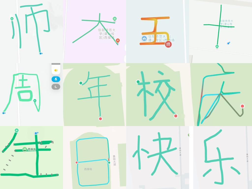 活动前期,工作人员精心筹备,为活动开展筑牢根基。活动当日近百人以单人或团队形式参与,借助Keep等软件记录跑步路线,合力跑出“师大五十周年校庆,生日快乐”字样,用运动轨迹传递对学校的祝福。活动现场氛围热烈,参与学生们或专注规划路线或相互配合调整步伐,工作人员高效协作,全程保障流程顺畅推进。活动结束后,工作人员及时收集参加活动同学的跑步路线图,将这些承载祝福的“运动笔记”整理归档。
