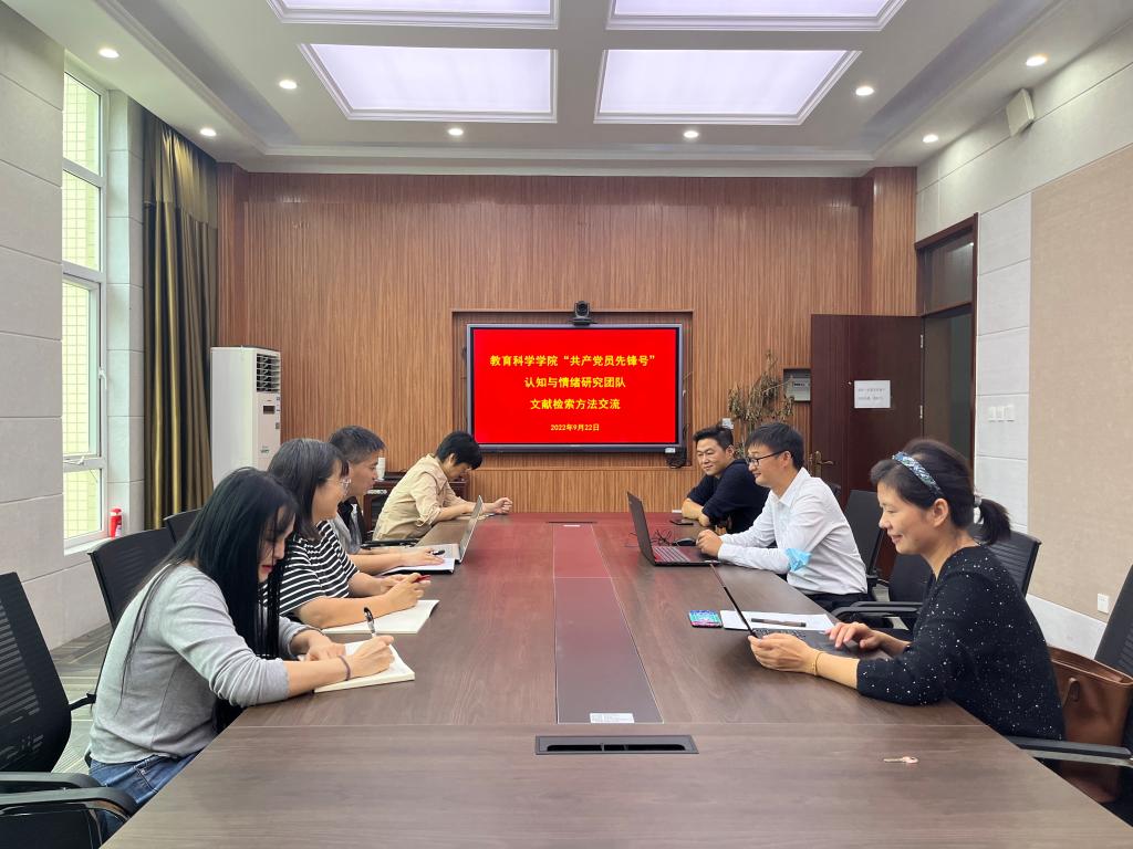 9月22日下午,威尼斯886699教工第二党支部“共产党员先锋号”认知与情绪研究团队于教科楼303会议室开展交流活动,团队成员刘湍丽、邢敏、燕小辉、杨勇、杨军义、赵昕、董国珍参加会议,会议由团队带头人刘湍丽主持。会上围绕学术论文的文献检索方法进行真诚分享交流,通过学术研讨促进老师们科研方法的资源共享。